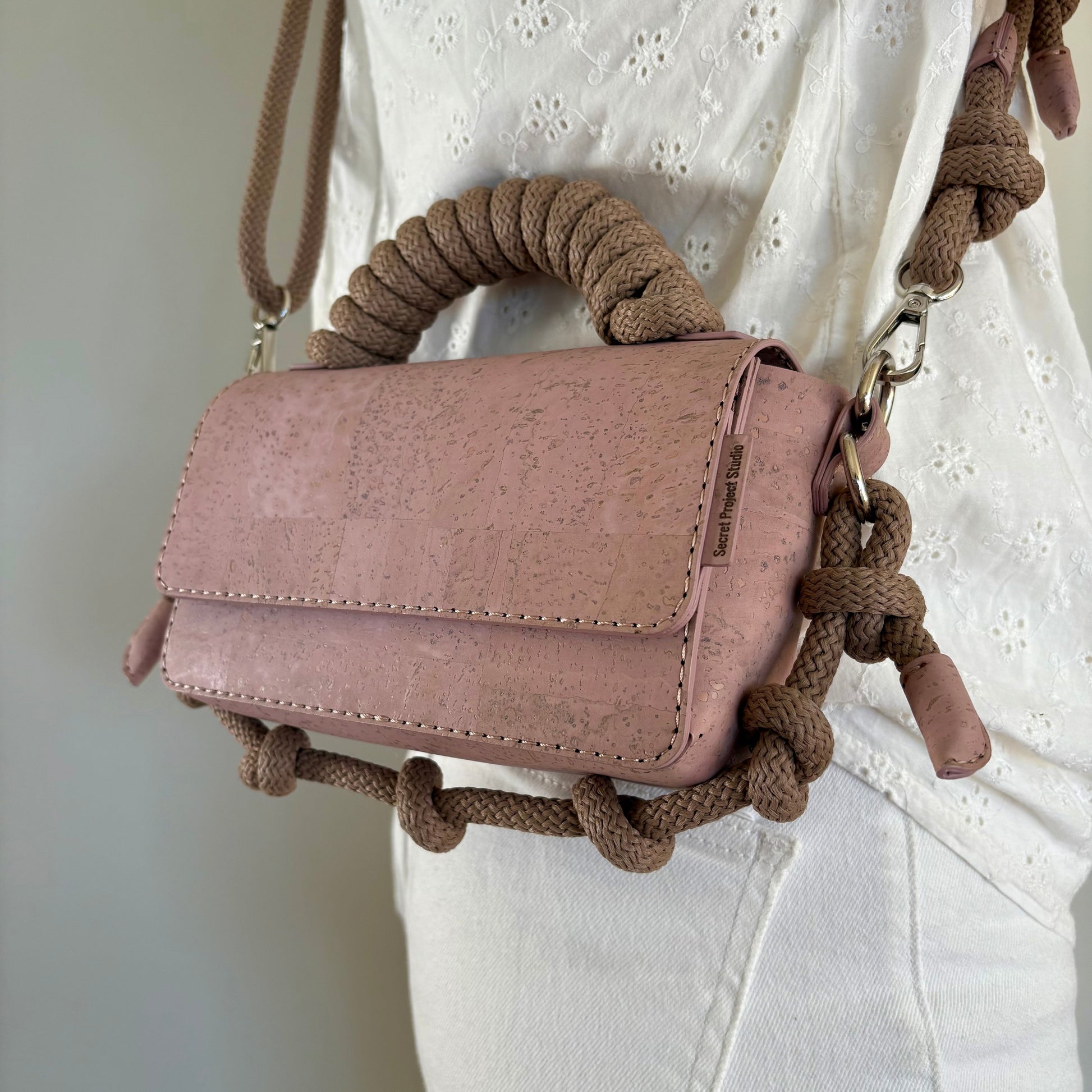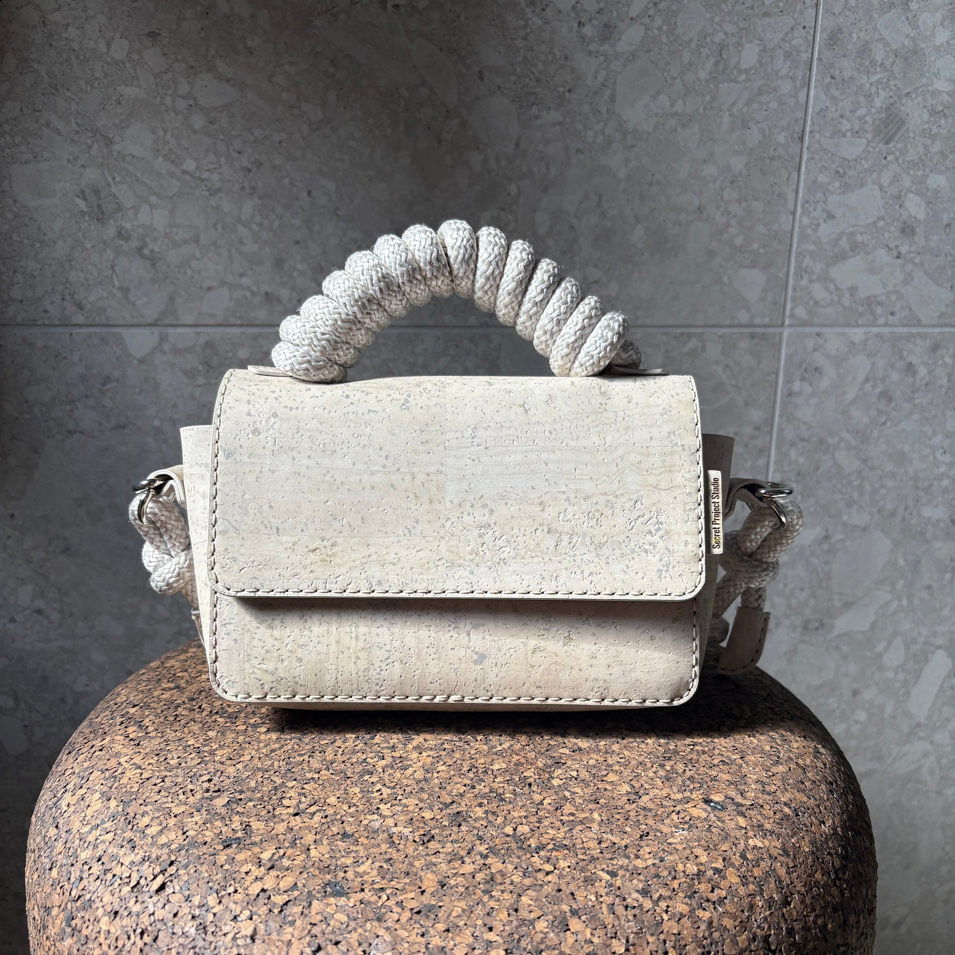 Alle veskene fra Secret Project Studio er sydd for hånd. De har en overflate av 100 % kork (innvendig og utvendig), samt en midtdel av bomull og polyester. Du får dem kun hos Bark Design i Norge. Les mer om Secret Project Studio her.
