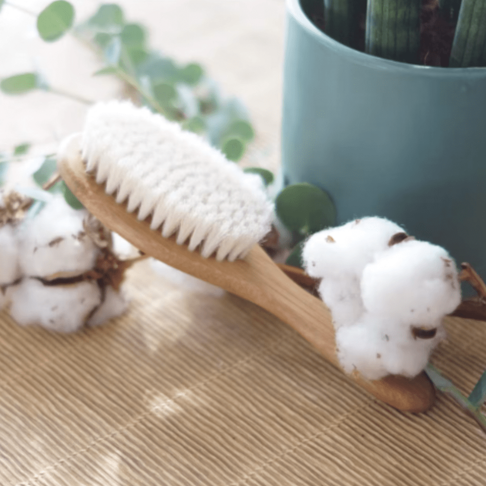 Vedlikehold: For å forlenge levetiden til børsten, unngå å bruke den i badekaret eller rengjøre den med mye vann. For enkel rengjøring, bruk en fuktig klut med litt såpevann. Påfør deretter en liten mengde vegetabilsk olje på bambusdelene for økt holdbarhet.