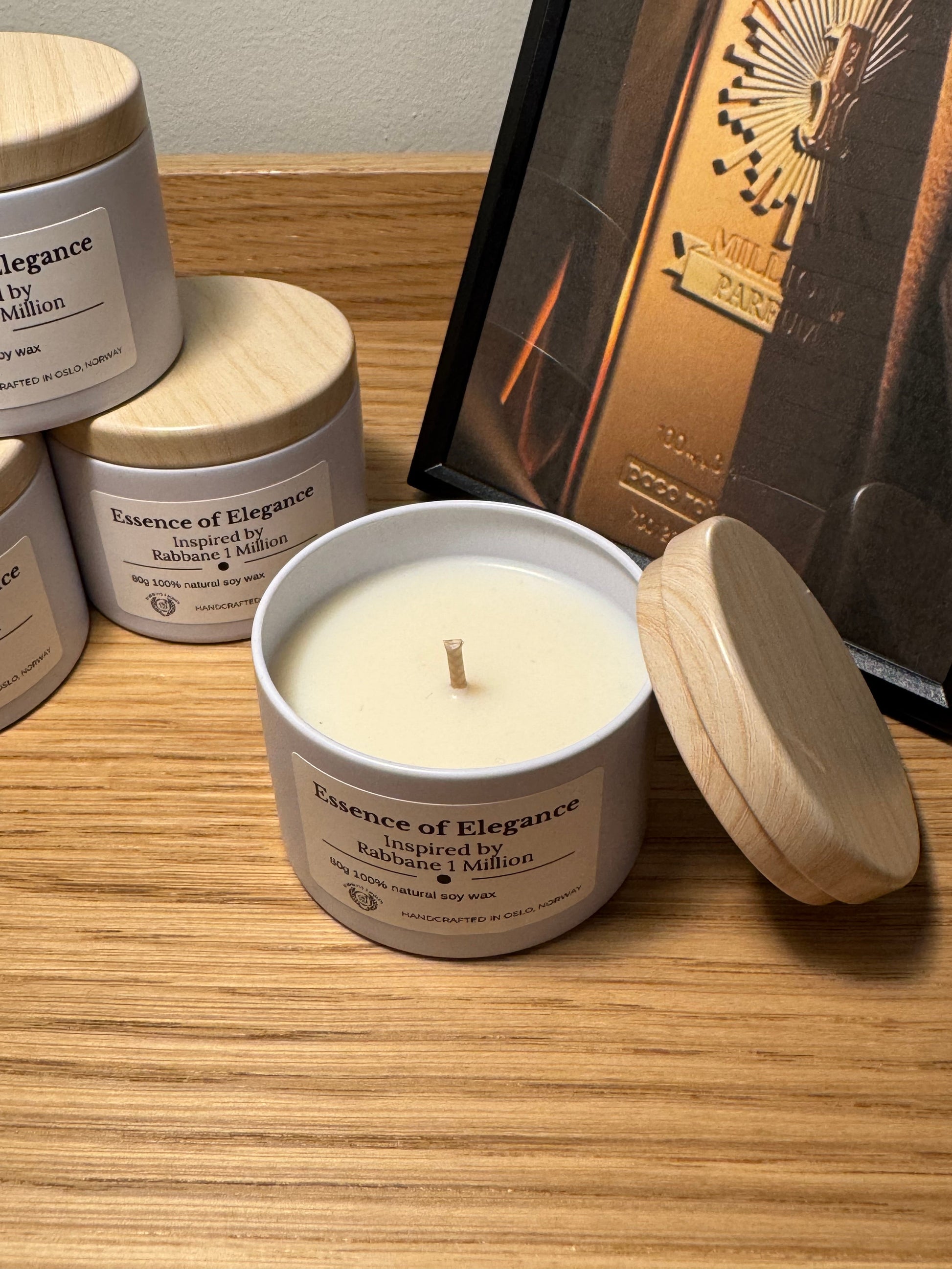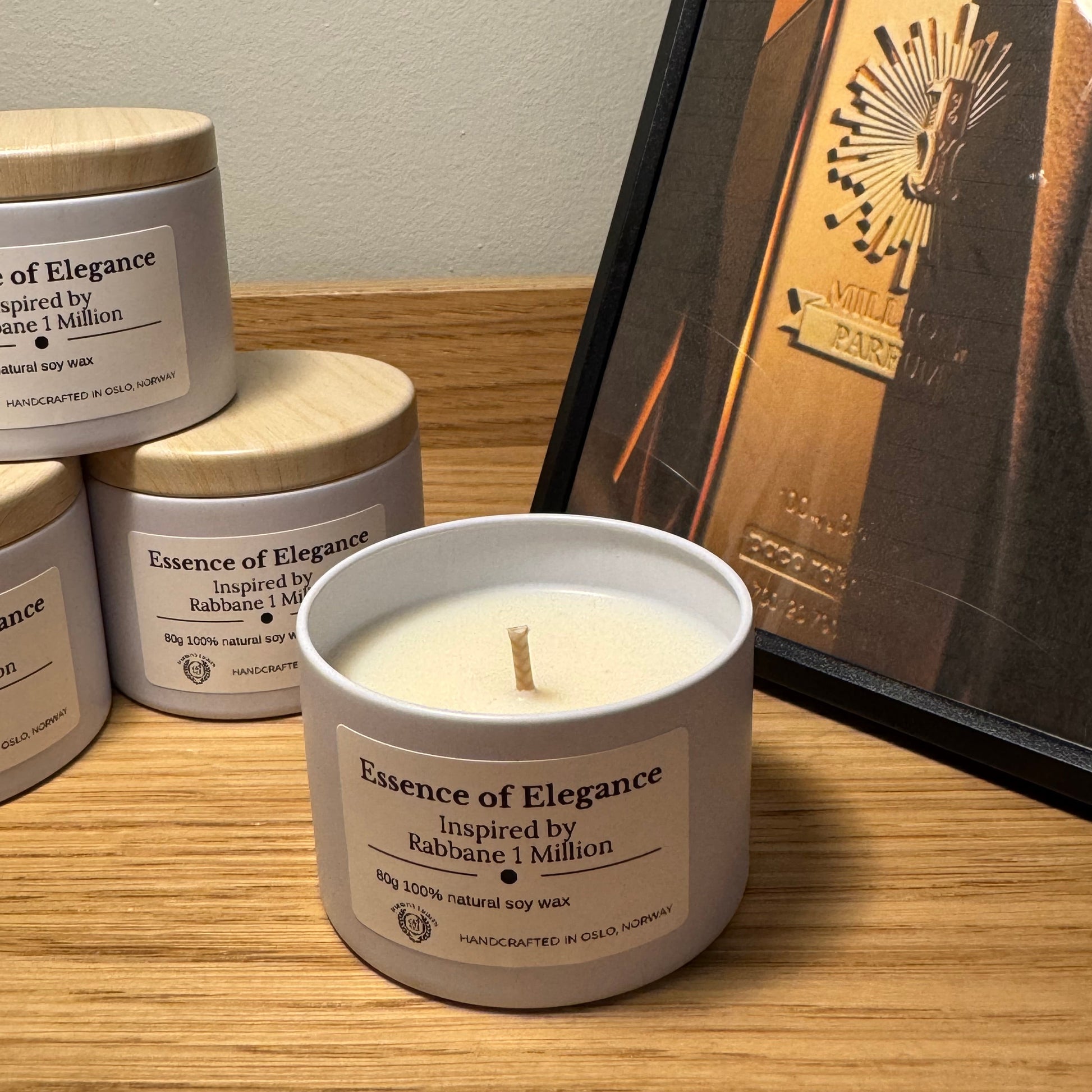 Dette duftlyset i en elegant, hvit metallbeholder har en maskulin og luksuriøs duft inspirert av parfymen 1 Million. Med sine krydrede noter av kanel, mynte og lær, sammen med en hint av sitrus, skaper lyset en sofistikert og energisk atmosfære, perfekt for å tilføre et moderne preg og en følelse av velvære til rommet.