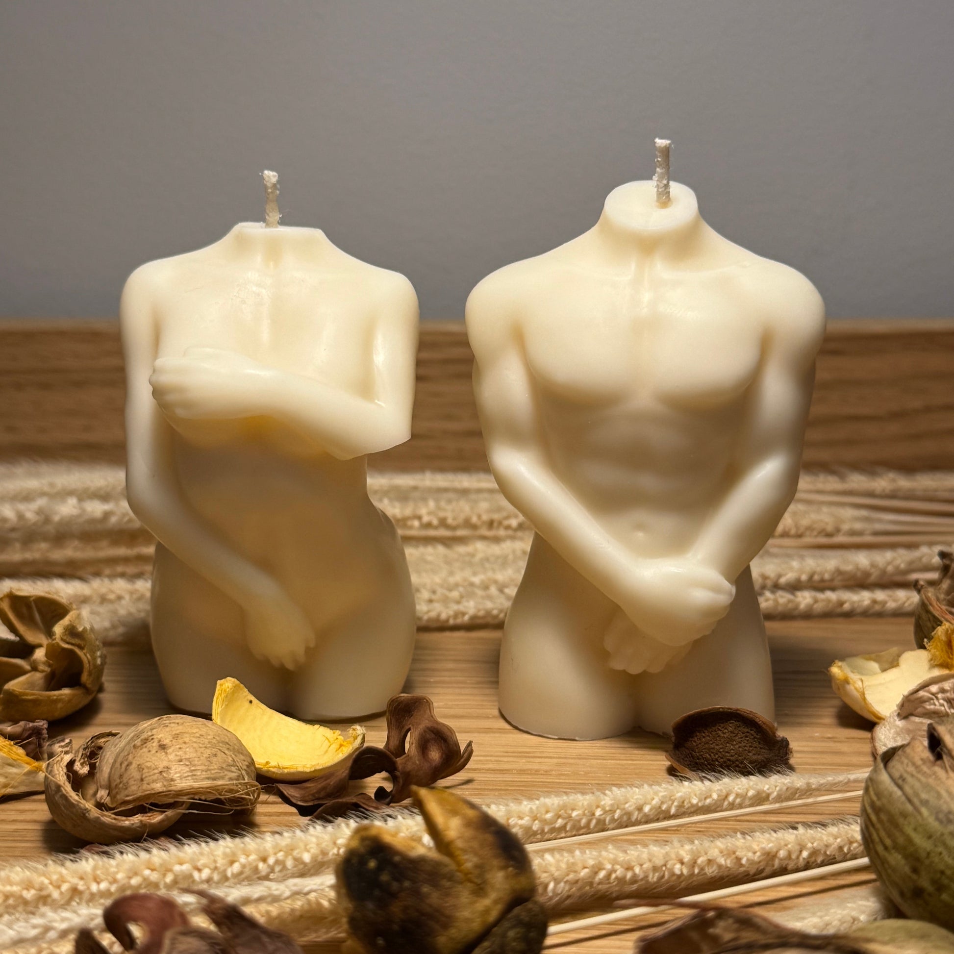 Lysene formet som kvinnelige og mannlige kropper som dekker seg til med hånden, kombinerer kunstnerisk eleganse med en subtil og uttrykksfull design. Lysene fremhever kroppens naturlige skjønnhet samtidig som bevegelsen gir en følelse av dynamikk og intimitet. De fungerer som unike og samtalestartere i interiøret, og passer perfekt for de som ønsker en dekorativ detalj med både estetikk og symbolikk.