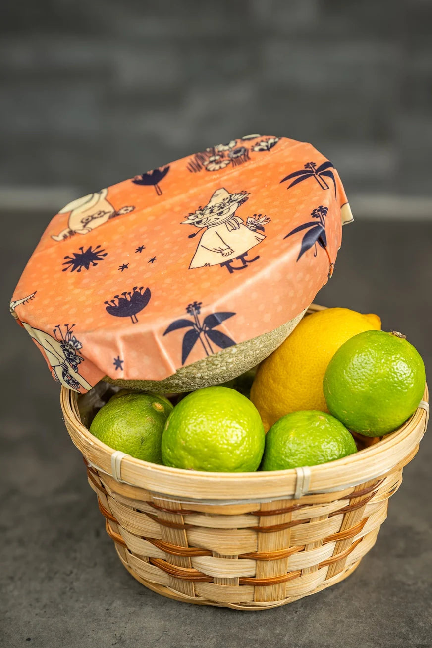 Bivokspapir med Mummi-design – et sjarmerende og bærekraftig alternativ til plastfolie. Med bivokspapir kan du enkelt oppbevare mat på en naturlig og plastfri måte, uten å gå på kompromiss med friskhet eller funksjonalitet.