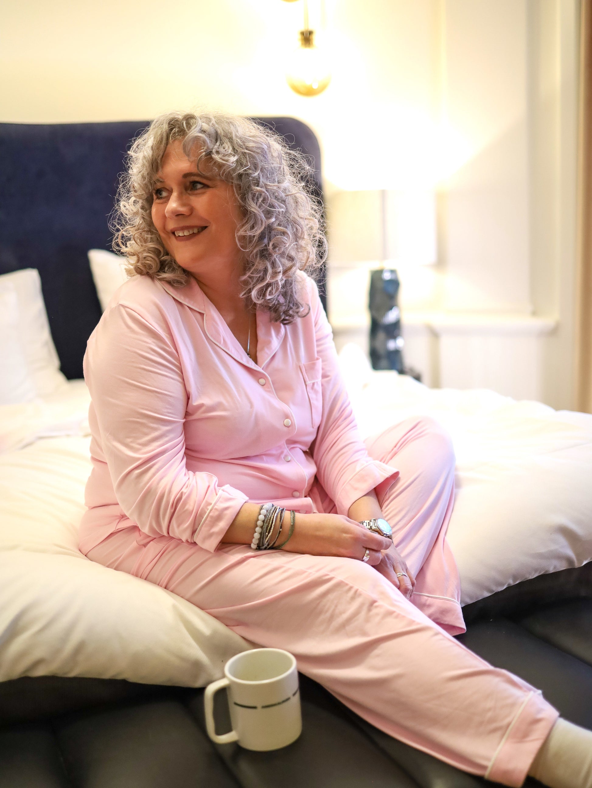 Pysjen er avslappet i livet slik at ingen ting klemmer på feil steder, men du har også mulighet til å stramme inn pysjen med sateng silkebåndet.