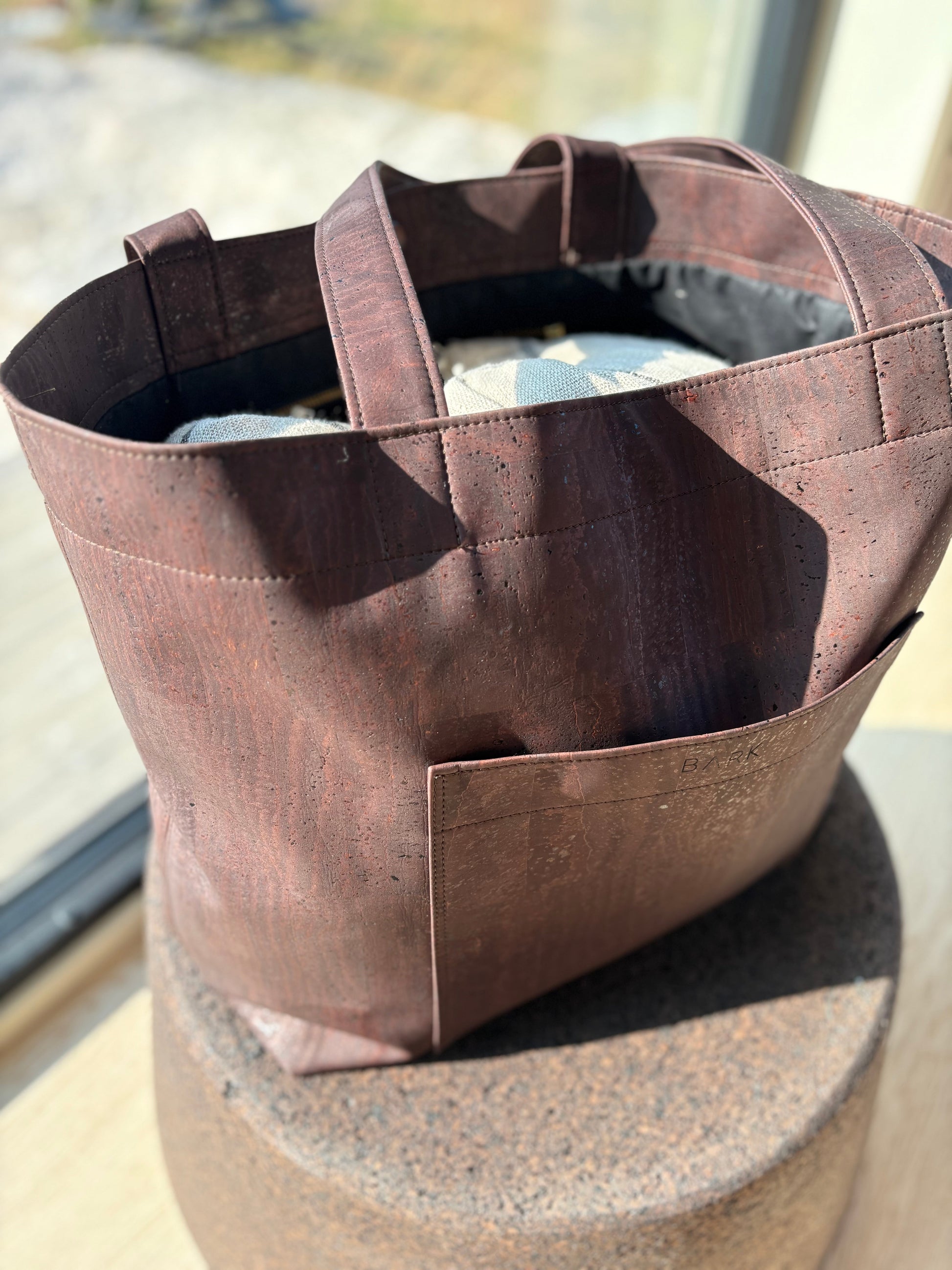 Med denne vesken er det ingen tvil - du får en unik veske som ikke er masseprodusert, og som kan brukes til det meste. Skill deg ut i mengden med en vegansk veske av korkskinn. Et godt valg for miljøet sammenlignet med mange andre stoffer. Er du en som alltid har med deg mye ut døren er denne perfekt. Den er også super som weekendveske eller mammaveske.