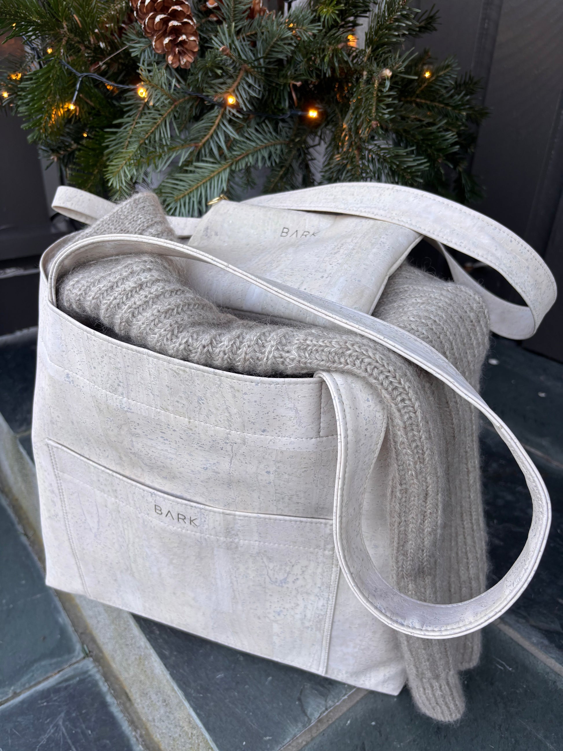 Vesken er designet av oss i Bark Design, og sydd i Norge av Sisters in Business - en bedrift som skaper jobbmuligheter for innvandrerkvinner. Les mer om våre egendesignede vesker her.