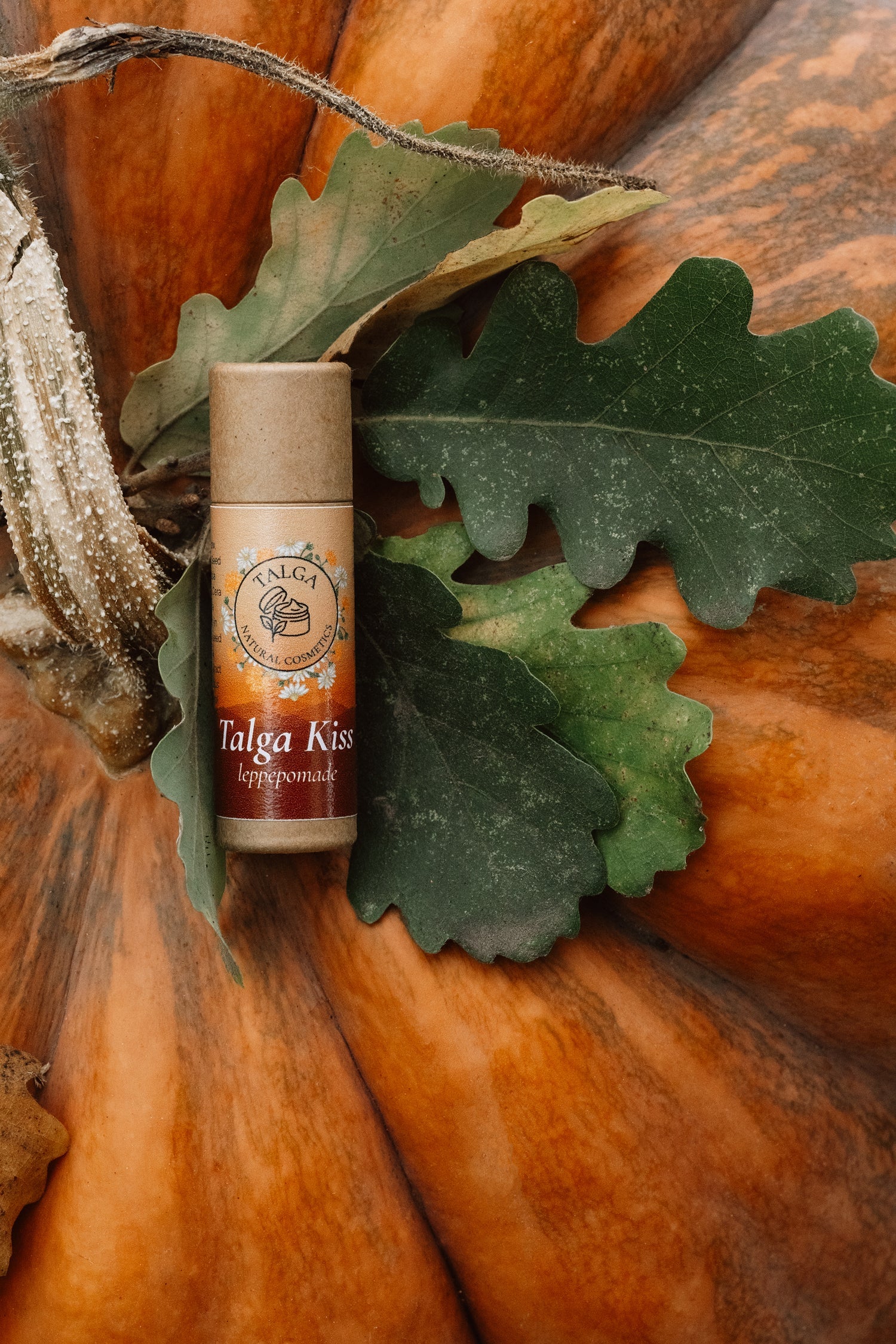 Talga Kiss er en ren og nærende leppepomade laget for å beskytte og pleie leppene året rundt. Basert på tallow (storfetalg), kakaosmør og bivoks gir den en silkemyk konsistens som smelter inn uten å føles klissete. Jojobaolje tilfører fuktighet, mens ekstrakter av ringblomst og kamille virker beroligende og reparerende. Vitamin E beskytter mot frie radikaler og hjelper leppene å holde seg myke og sunne.