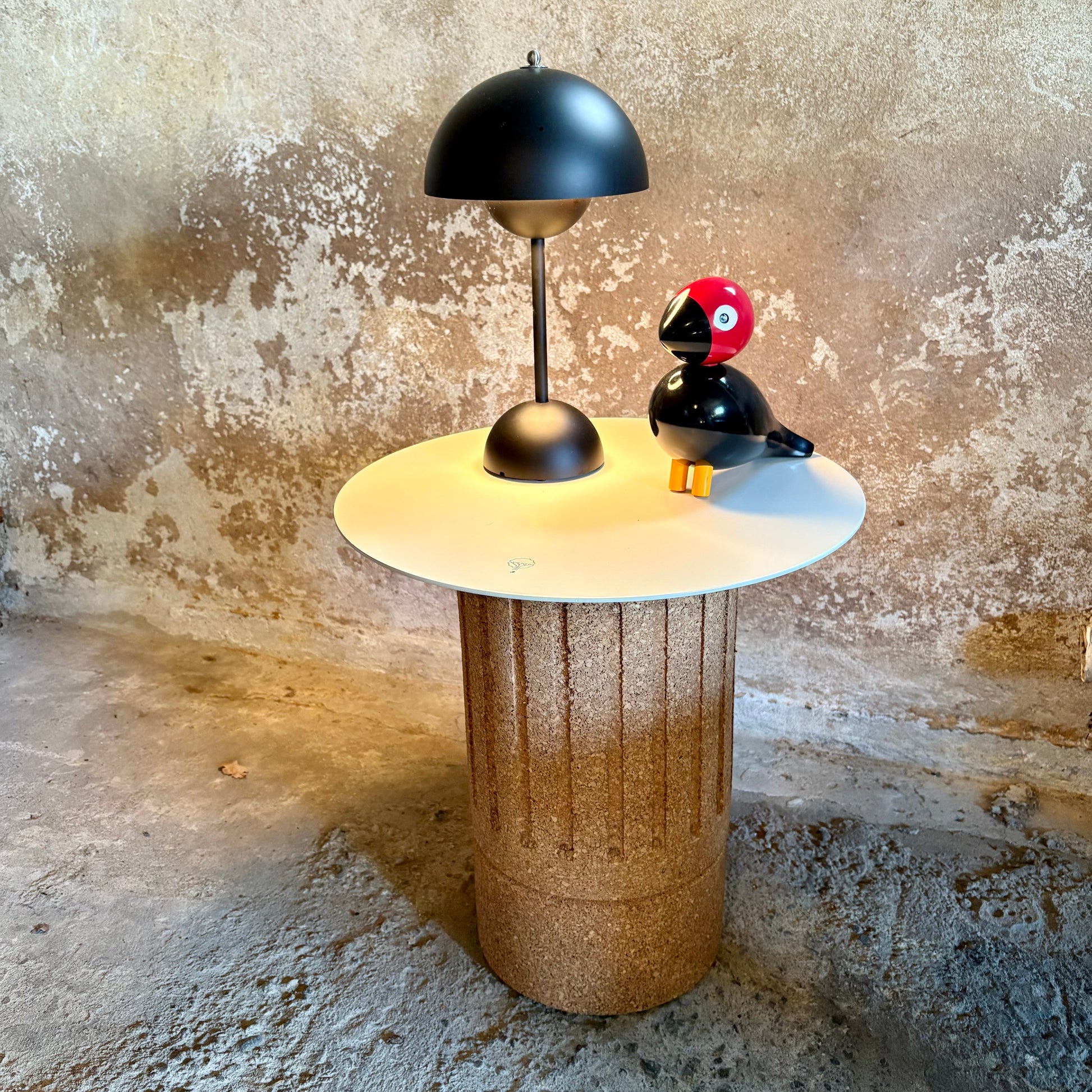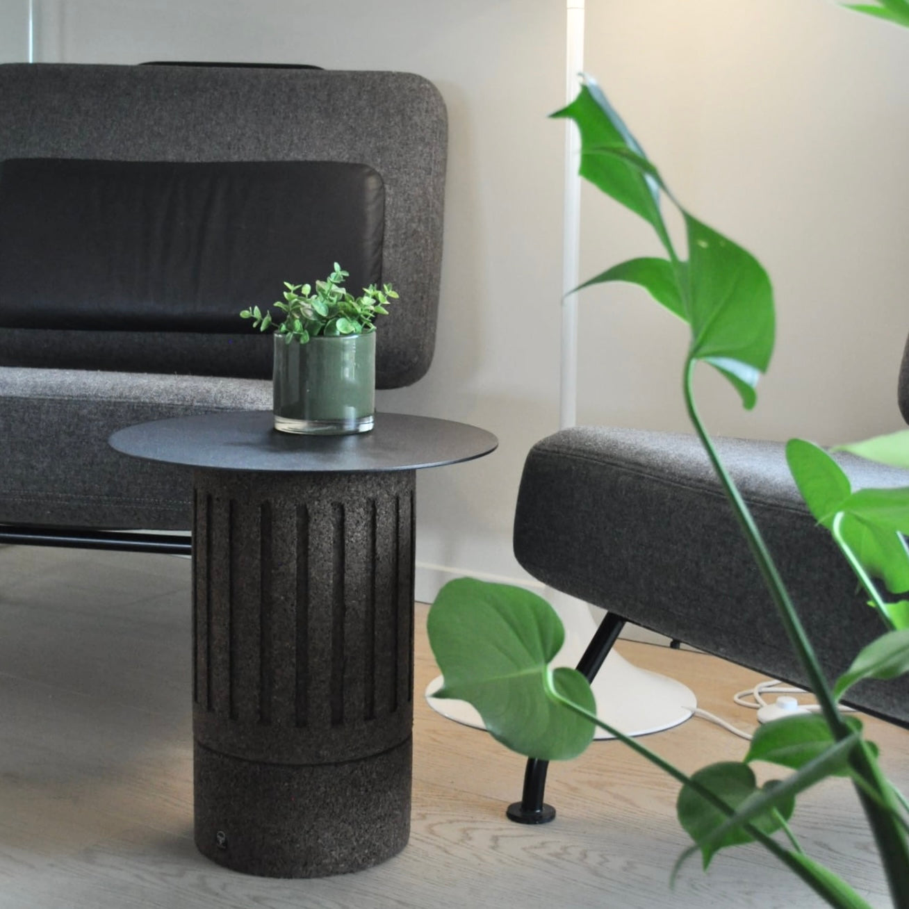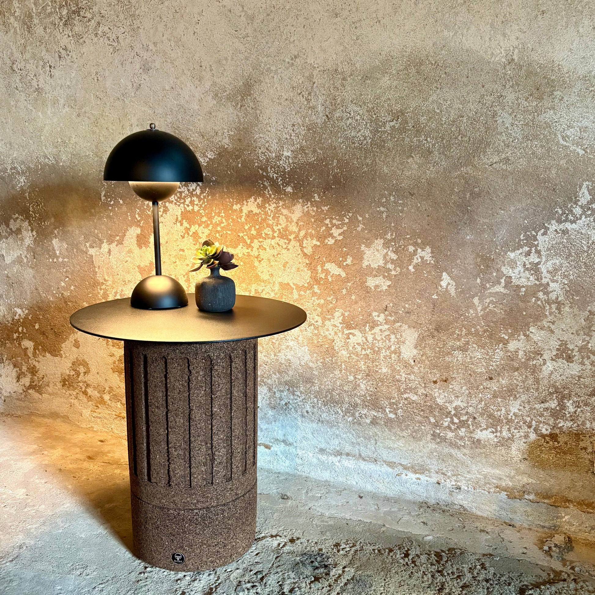 Topplate av metall til Korkii base. Med denne platen vil gulvvasen omgjøres til et fullverdig sidebord. Vår fine logo er gravert på platen. Platen kan kjøpes i to ulike farger, sort og beige.