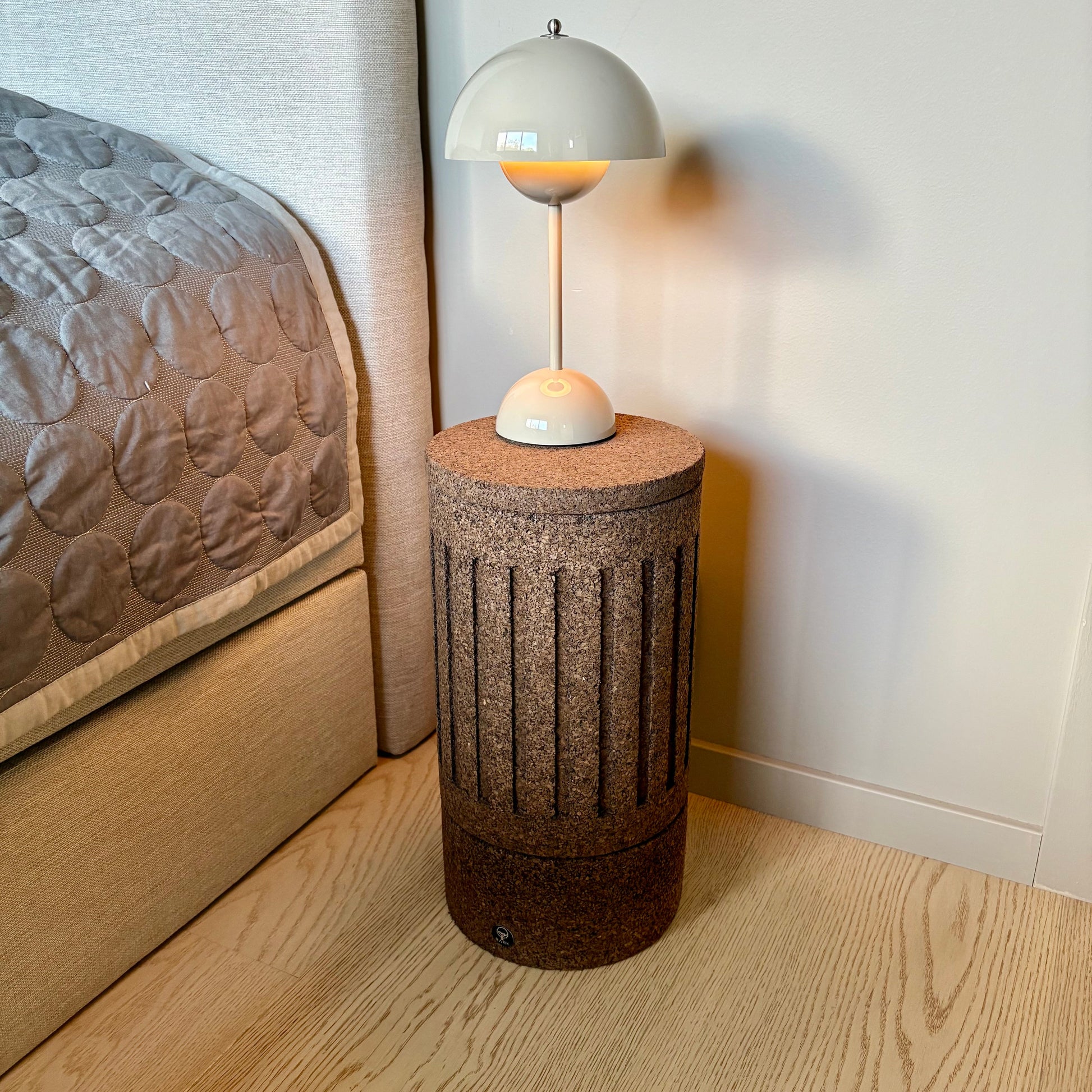 Lite topplokk til Korkii base, av 100 % resirkulert kork. Med dette lokket vil gulvvasen omgjøres til et lite sidebord/pidestall med mulighet for litt oppbevaring. Les mer om Korkii-serien her.